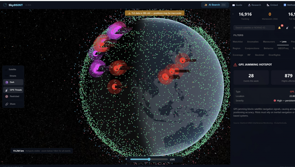 OSINT, geospatial intelligence, aviation monitoring, satellite surveillance, และ GPS interference awareness